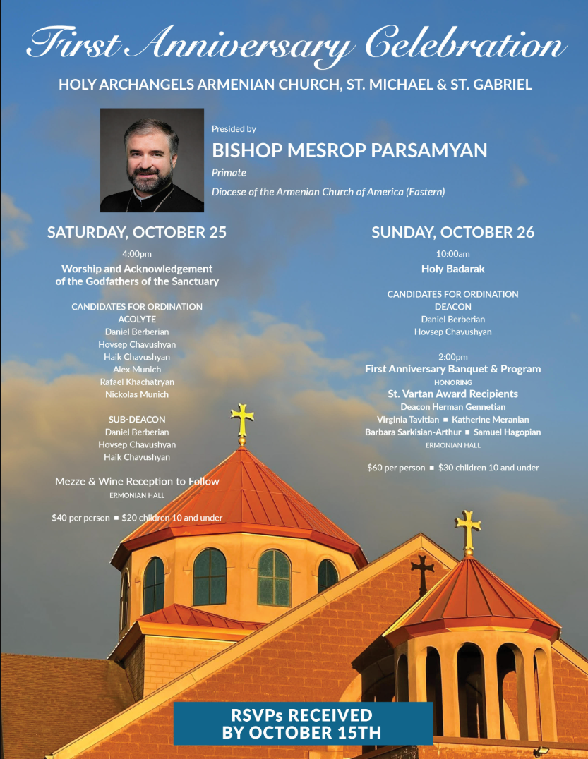 Thank you for visiting our website! As I think you will find in the pages ahead, Holy Archangels Armenian Church is a church filled with a lot of wonderful people who genuinely love God and genuinely care for one another. Our prayer and desire is that we might help point you to the love and power of God, traditions of the Armenian Church, and Armenian heritage.
